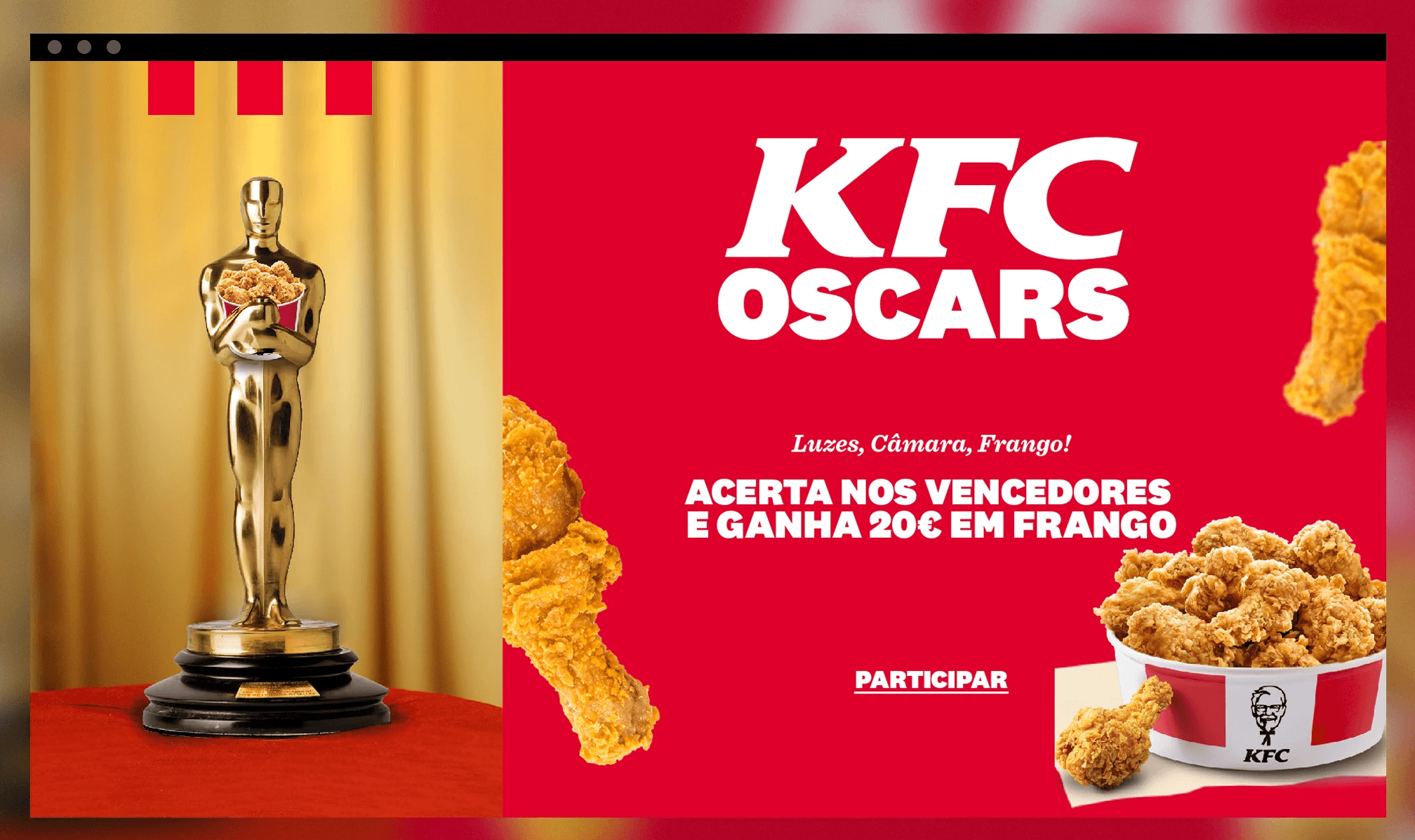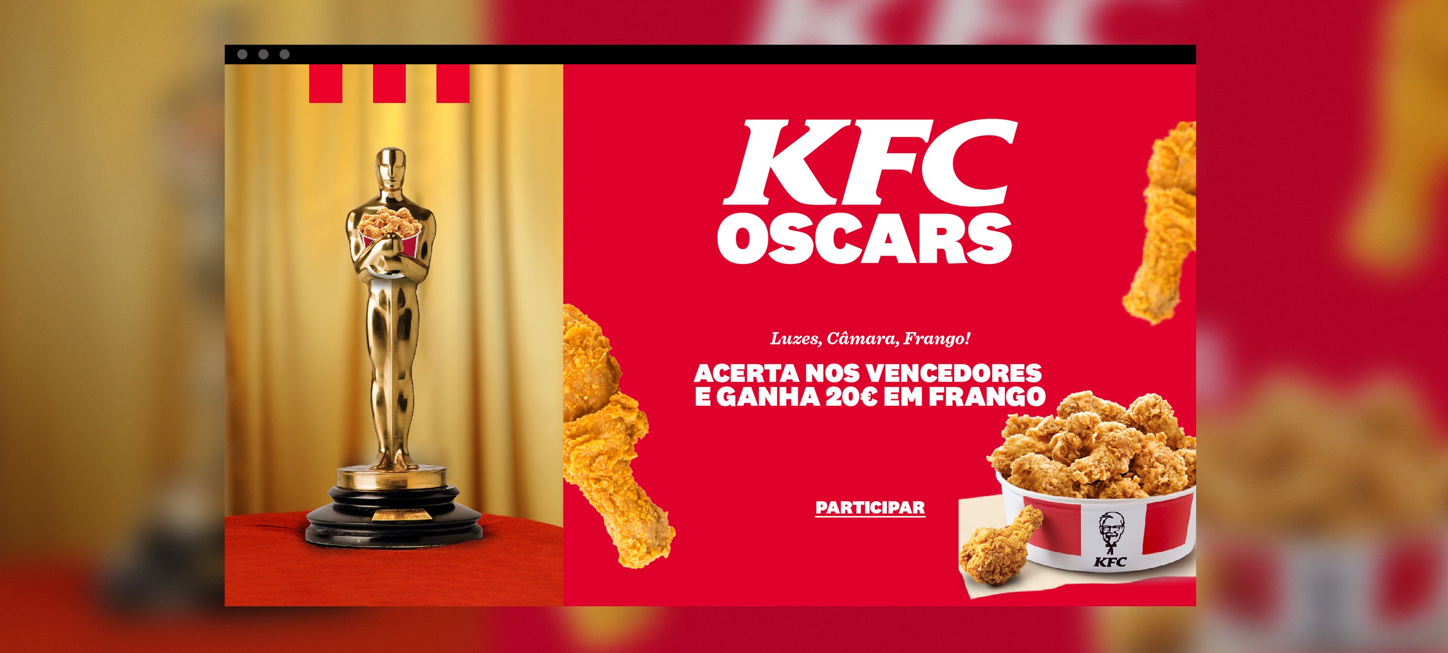 Fans were invited to guess the winners via a dedicated landing page, promoted through social content. Correct predictions were rewarded with €20 in KFC credit — turning pop culture attention into active participation.