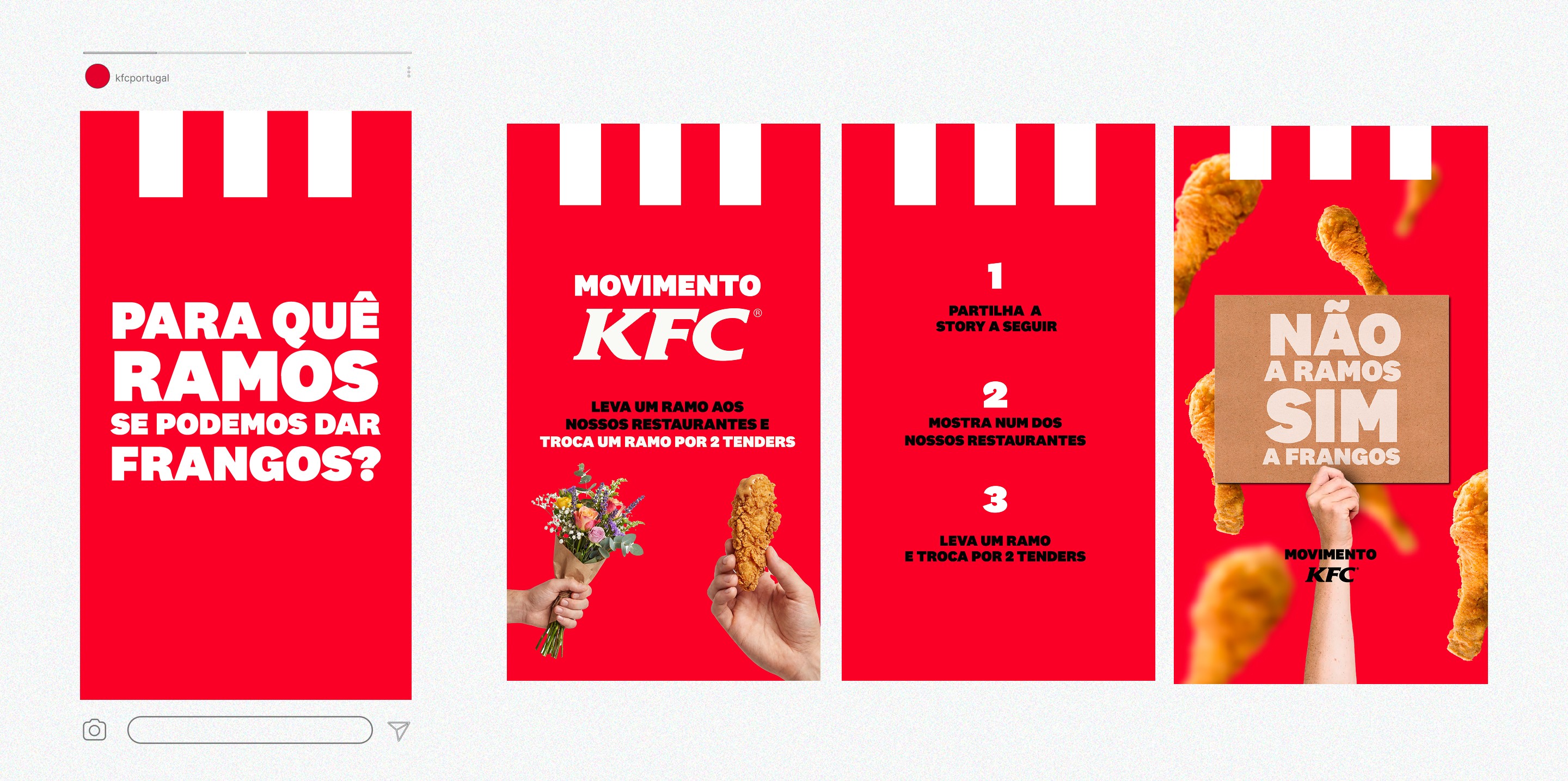 Through social media, the community was encouraged to share the movement and take part physically by bringing a bouquet to a KFC restaurant — where it could be exchanged for KFC chicken.